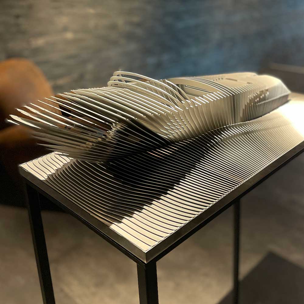 Antoine Dufilho is een kunstenaar die opereert op het kruispunt van beeldende kunst,ambacht en verbeelding, met het object als drager van herinnering en betekenis. In zijn sculpturale praktijk, waarin materiaal, textuur en detail centraal staan, ontwikkelt hij een herkenbare beeldtaal die verhalen oproept over reizen, tijd en de menselijke drang om te vertrekken en terug te keren. Zijn boten vormen de kern van zijn oeuvre: fragiele, vaak fijn opgebouwde constructies die balanceren tussen stevigheid en broosheid en tegelijk herkenning en vervreemding oproepen. Met deze eigenzinnige signatuur geniet hij internationale erkenning, waarbij zijn werk een breed publiek aanspreekt door zijn authenticiteit en universele thematiek van de mens onderweg, op zoek naar richting en betekenis.